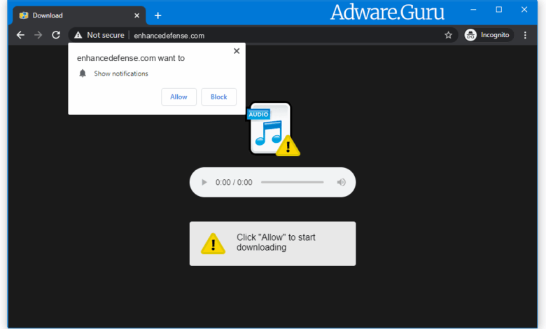 Enhancedefense.com is a domain that tries to trick you into clik to its browser notifications so that it can send pop-up window to your desktop or phone.