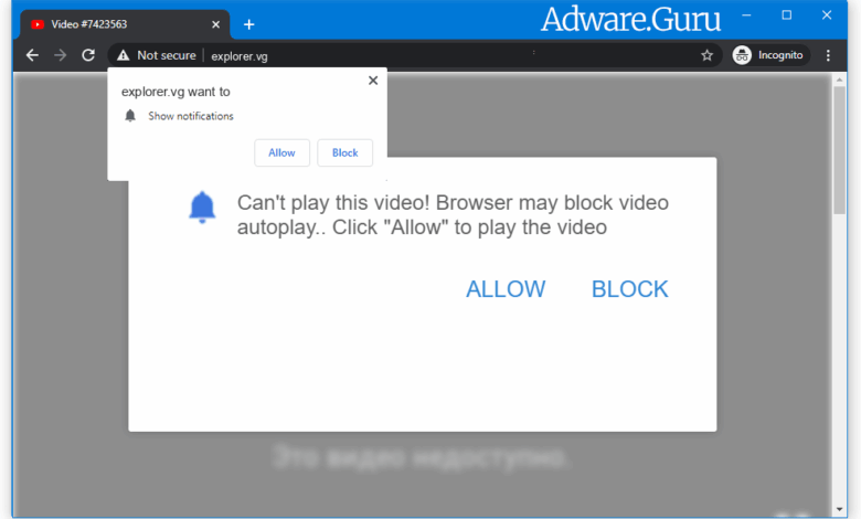 You should not click on the “Allow” button when you see such messages. If you click on the “Allow” button, you will start seeing spam pop-ups from Explorer.vg on your PC or phone, even when the browser is closed. The Explorer.vg spam notification are for 18+ sites, fake software updates, unwanted programs and etc.