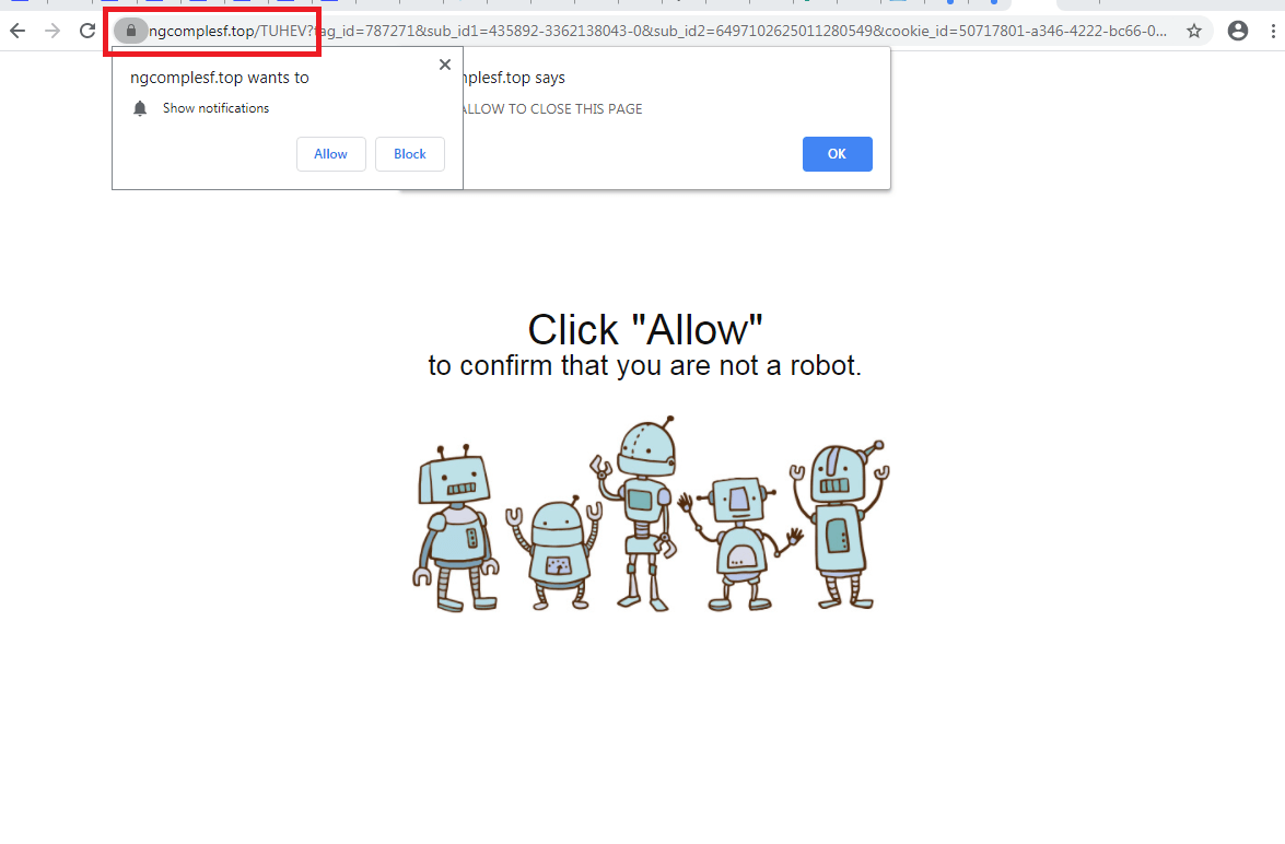 As soon as a harmful program is set up, whenever you will search the Internet, unwanted ads from Ngcomplesf.top will pop-up. These Ngcomplesf.top advertisements will show a “click Allow” message, asking you to subscribe to notices from this site. If you click the “Allow” button, then you will start seeing undesirable pop-up advertisements from Ngcomplesf.top on your desktop even when your browser is closed.