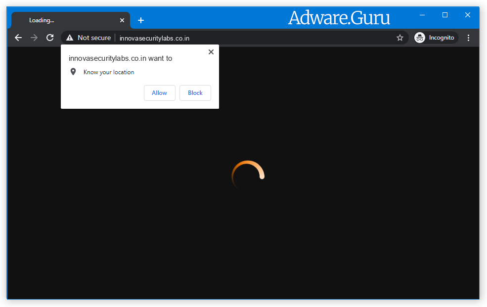 Less than reputable sites can display malicious banners that redirect your browser to Innovasecuritylabs.co.in to generate advertising revenue. If this happens, you can close the page and install a free browser extension like Adblock to block the ads. However, if you continuously see pop-ups from Innovasecuritylabs.co.in, then your computer might be infected with a malicious program, and we will need to scan your computer for malware and eliminate it.