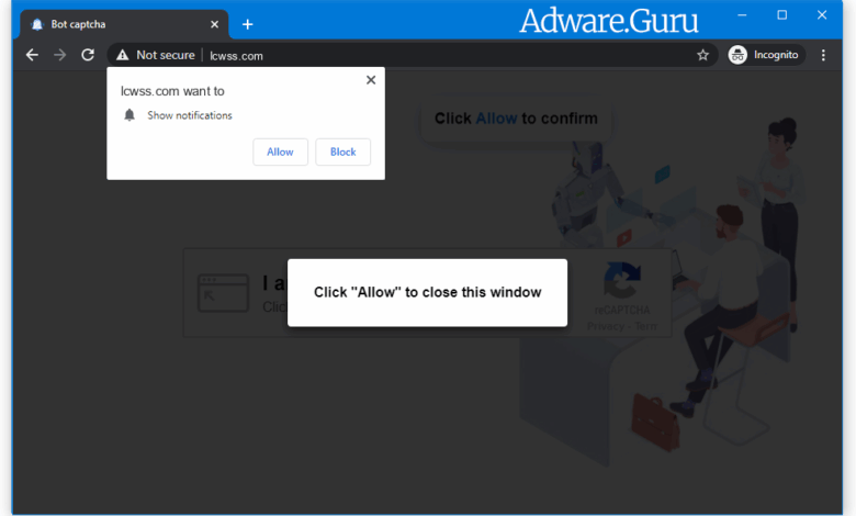 Lcwss.com is a domain that tries to force you into clik to its browser notifications so that it can send pop-up window to your PC or phone.